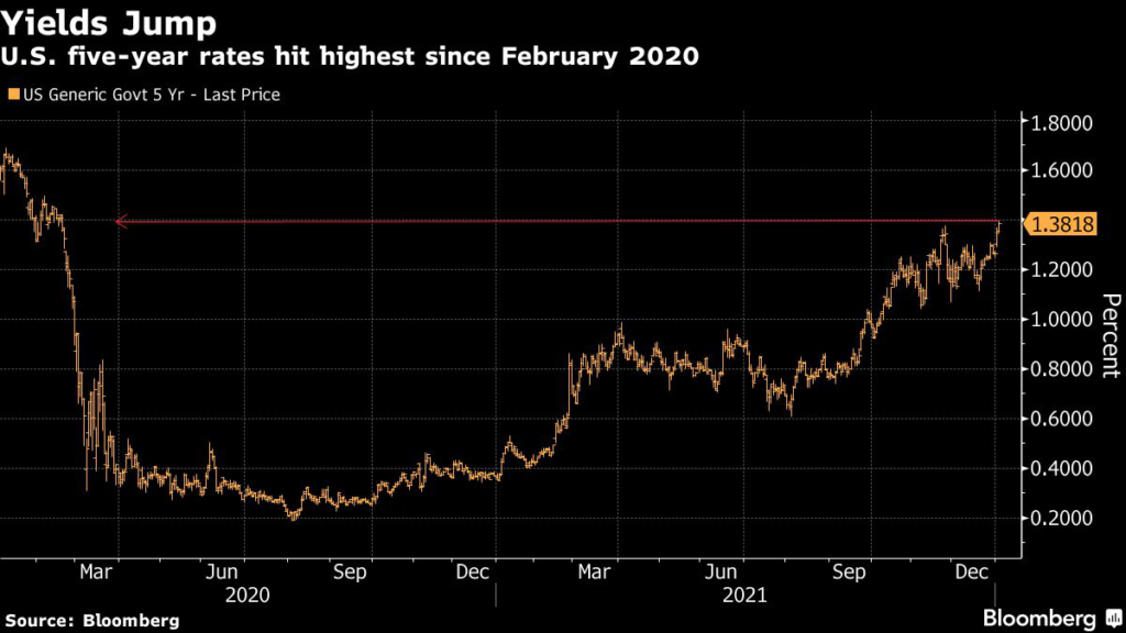 U.S. Five-Year Yield Highest Since February 2020 in Bond Selloff