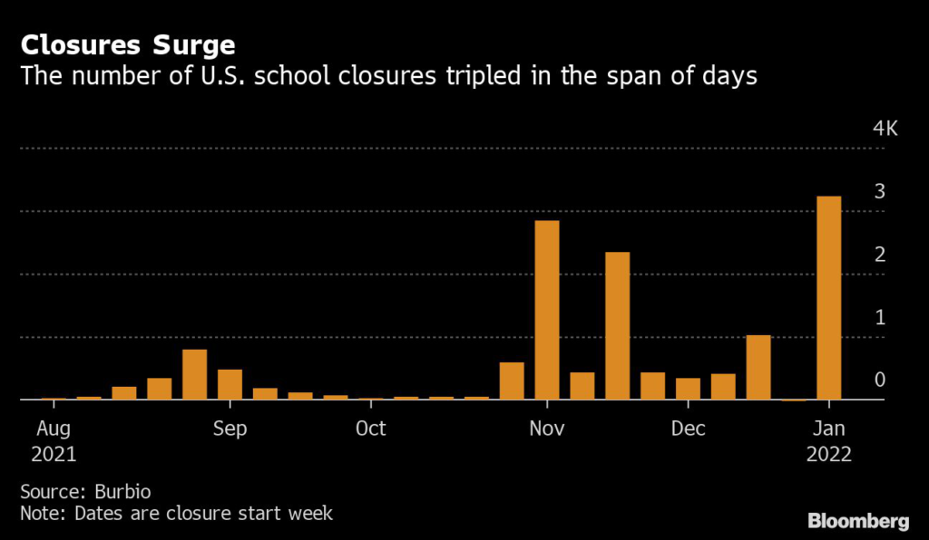 (Bloomberg) — School closings are accelerating across the U.S. as omicron infections ensnare teachers and drive staffing shortages.