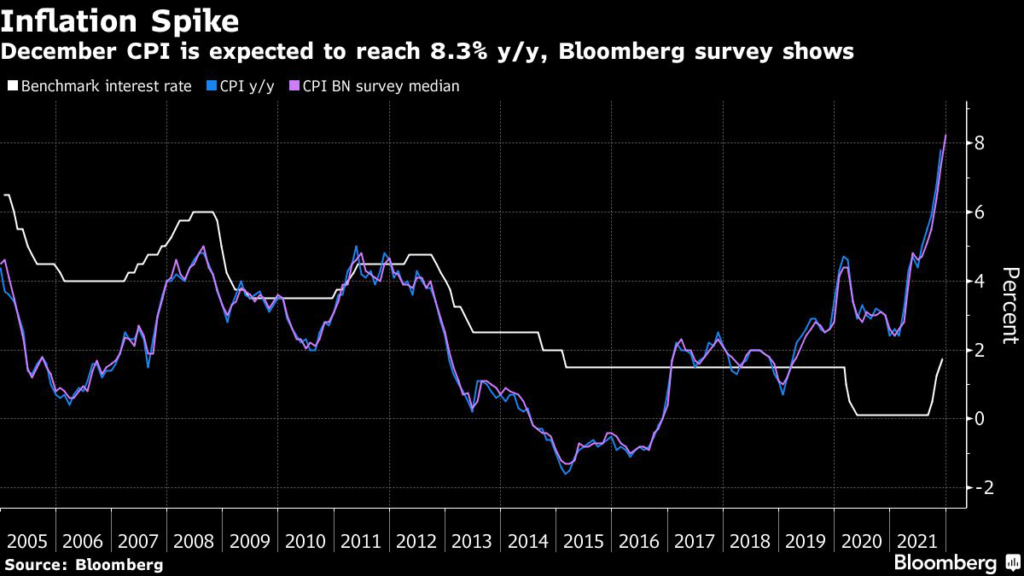 All three have advocated for higher interest rates, while Gatnar said last week that “a 50 basis-point hike would be appropriate” if forecasts that inflation exceeded 8% in December are confirmed on Friday. In November, consumer price growth surged to 7.8%, the highest since December 2000.