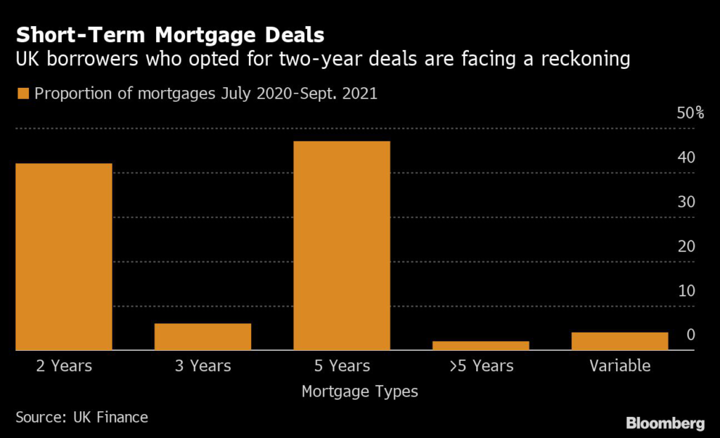 The relief on the stamp-duty levy ran from July 2020 to September 2021. About 42% of borrowers in that period, which includes those remortgaging, fixed for only 24 months, according to data from UK Finance.