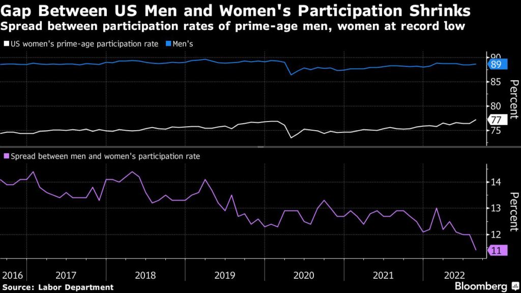 (Bloomberg) — Women notched up strong employment gains in August as more found jobs or looked for work, helping to raise the overall US labor-force participation rate.