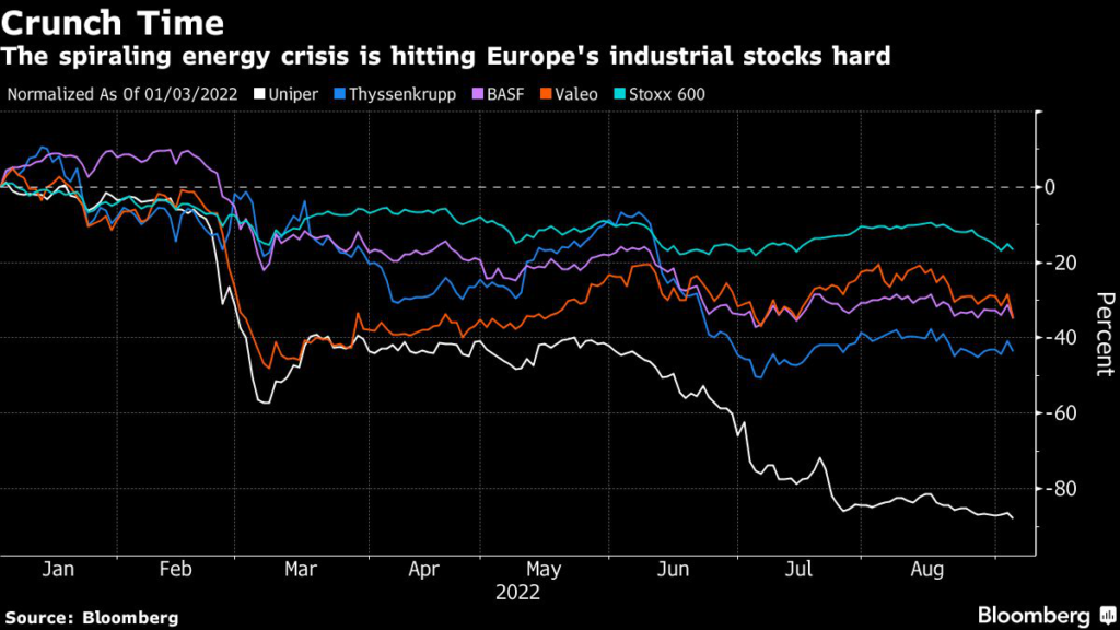 (Bloomberg) — Investors are rushing to sell stocks most exposed to the energy crisis after Russia dealt a fresh blow by not resuming gas deliveries through the Nord Stream pipeline.