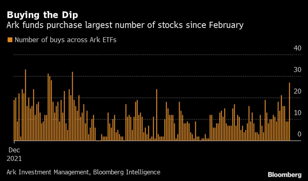 La brutal caída del martes motivada por un dato de inflación que superó las expectativas, pareció una oportunidad para la empresa de gestión de activos de Cathie Wood, Ark Investment Managment.