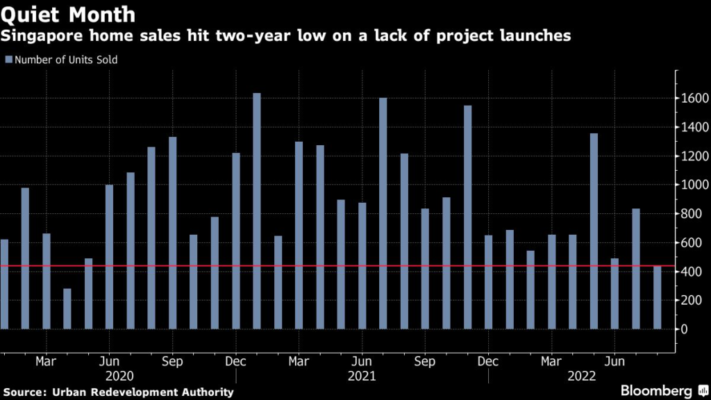 (Bloomberg) — Singapore home sales fell 48% in August to the lowest in more than two years as a lack of supply kept buyers at bay.