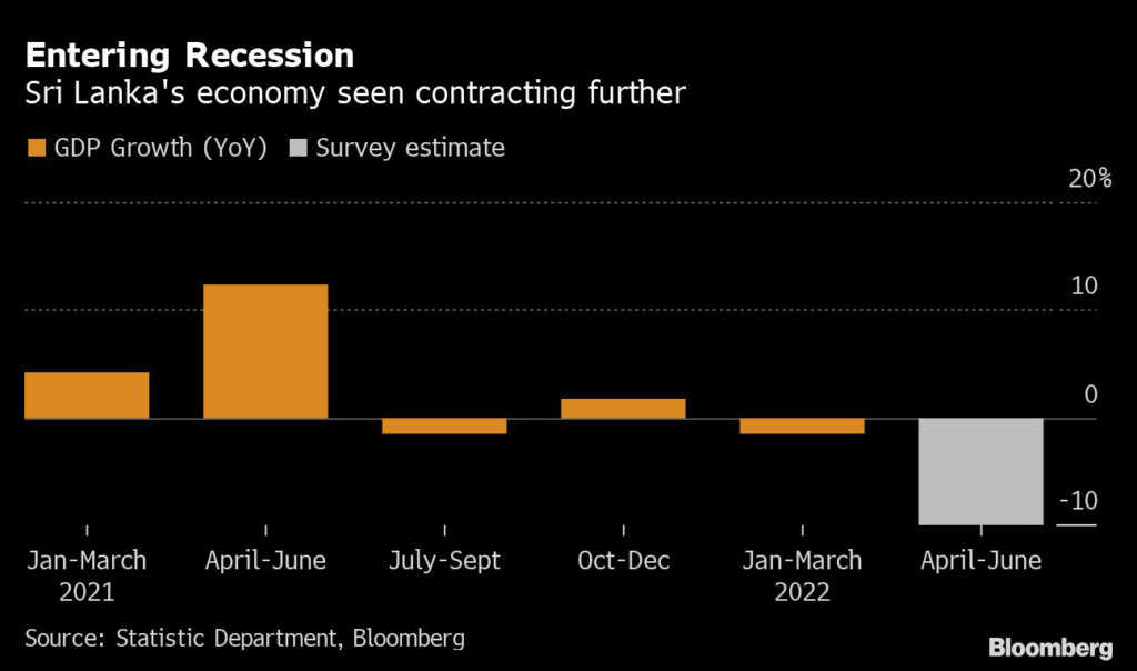 (Bloomberg) — Sri Lanka’s economy likely shrank the most in two years amid a debt crisis that triggered a default and widespread protests that brought the nation to a standstill leading to the ouster of the president.